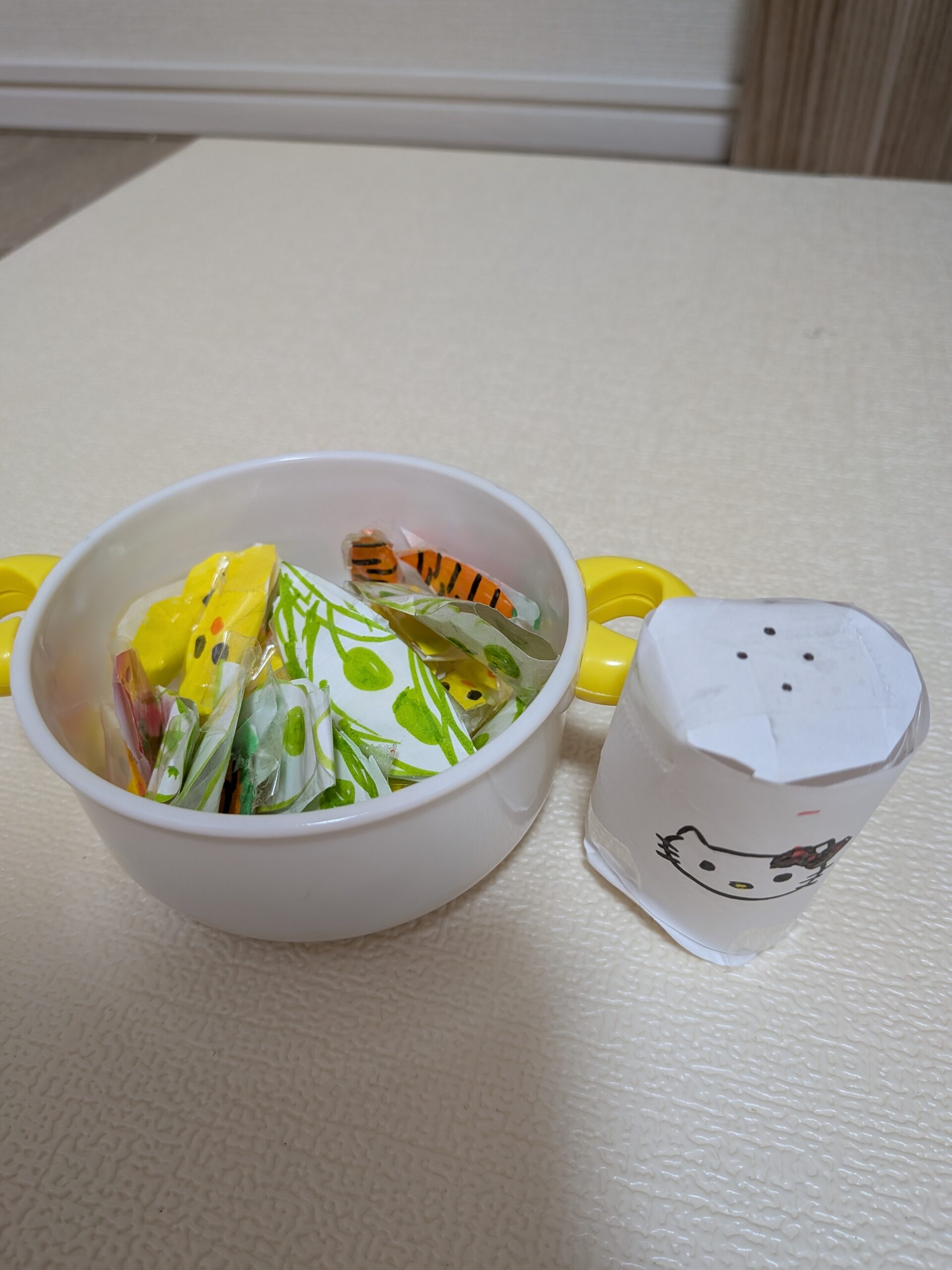 グラスにキティの顔が乗ってるのが気になる