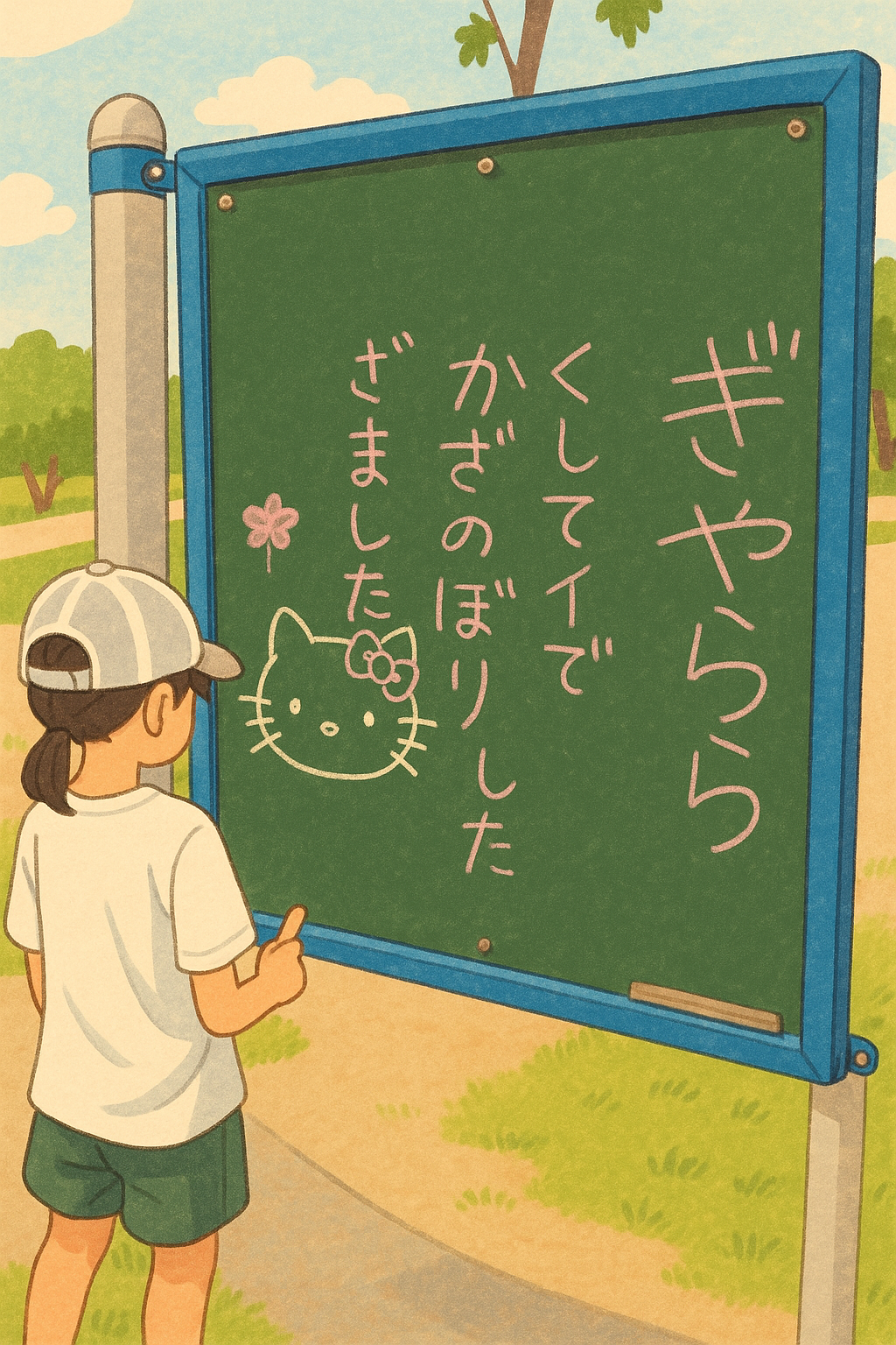 舎人公園で黒板に日記を書く。あとipadのお絵描きアプリにポムポムプリンを描いた