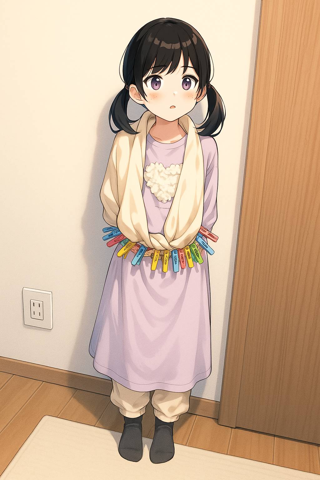 布と洗濯バサミでドレスを作って着ていた